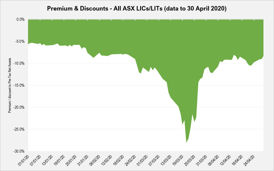 Along with the rest of the global equities market, prices dived at record speeds as social distancing and lockdowns threw economies into turmoil. Across all asset classes, liquidity proved priceless and investors proved willing to pay anything for it. Predictably, LIC and LIT price discounts to net assets widened at a vicious speed amid the sell-off.