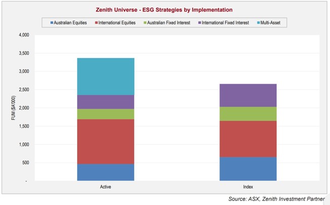 As shown in the following chart, across our investment universe of both unlisted funds and ETFs, approximately 44% of FUM was in dedicated ESG strategies that follow an index-based methodology.