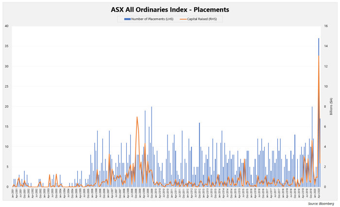 As experienced in the GFC, the deterioration of the economy resulted in companies raising capital to shore up balance sheets. However, unlike the GFC, we have found that this time around, companies with growth ambitions also took the opportunity to tap the market for additional capital. As a result, April 2020 was a record-breaking month, with 37 placements raising a total of $A 13 billion.
