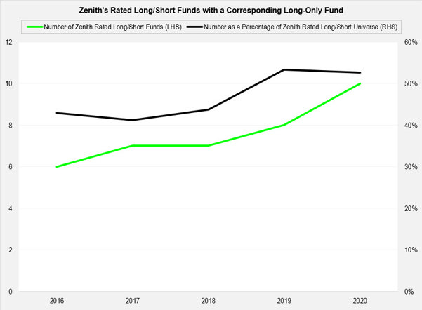 In an effort to remain relevant, a number of managers have also launched more creative responses. ”We have seen a clear trend showing the migration of long-only core managers into the long/short space over the past five years”, commented Quan Nguyen, Head of Equities Research at Zenith.