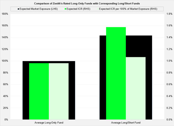 While a basic assessment in comparing the expected ICRs* of the offerings illustrates a material difference in fees, when adjusted based on the products actual dollar value invested (gross exposure), the fees remain comparable. In fact, there is just a 0.1% p.a. premium for long/short managers when ICRs are assessed per 100% of market exposure.