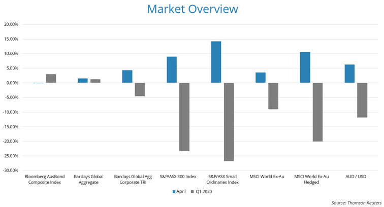 Despite the sell-off in March, April witnessed an equally stunning reversal. As often is the case, just when all seemed lost, markets rebounded strongly as the selling abated. What was sold off the most in March, recovered the most in April, with Australian small and microcap shares among these.