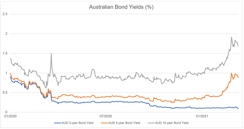 The COVID-19 economic revival has recently encountered inflation concerns as increasing interest rates threaten the economic recovery. The bond market volatility has seen the Australian 10-year Government bond yield briefly surge to 1.91% in February 2021 from a March 2020 low of 0.61%. As such, Australian bonds now offer investors some of the highest yielding government securities in the developed world.