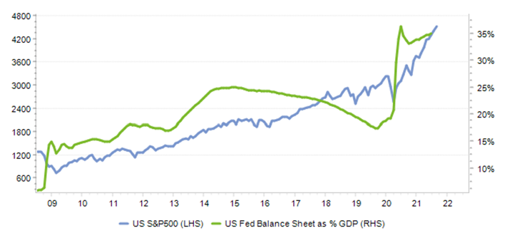 With central banks engaged in a high-wire act between blowing asset bubbles and a policy misstep, we maintain our advocacy for active management in our portfolios to help shield against these growing uncertainties. As some recalibration of the pandemic emergency asset purchasing programmes appear inevitable, the risk is that this translates to constrained returns in the near-term.