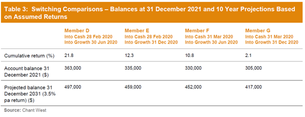 So how have those members who switched to cash and subsequently switched back (most of them to their original growth option) fared? The answer is that it all depends on the timing.