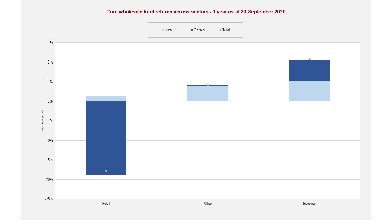 This is largely supported by the returns across core real estate funds (as measured by the MSCI/Mercer Australia Core Wholesale Monthly PFI) which show that for the office category, despite exposure to rent abatements and capital write-downs, returns for the year to 30 September 2020 remained in positive territory, underpinned by income which is the foundation of the asset class.