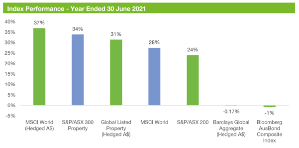 The 2021 financial year will be remembered for the phenomenal reversal that equity markets enjoyed following the economic slump experienced at the start of the year. The contrast was stark, with lockdowns and uncertainty replaced with reopening and vaccine optimism. The ensuing economic upswing saw share markets continue to march upwards, finishing the year hovering at record highs.