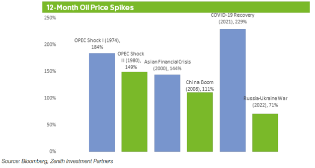 Although our underweight positioning has detracted from performance in the short-term, our aggregate portfolio exposure has been neutral energy. It’s also important to highlight that these outsized moves in oil have few historical precedents, with only five instances where oil has doubled over 12-months since the 1960’s.