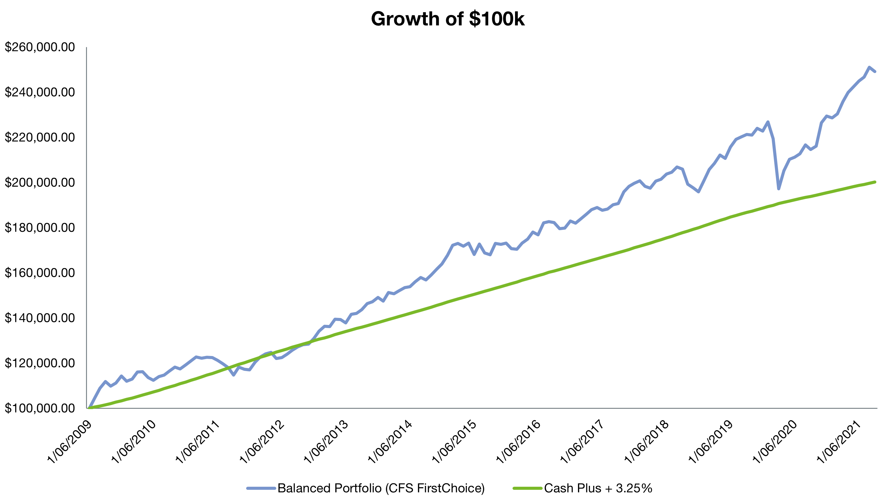 Zenith has been operating a series of 5 risk profiles on the CFS platform since June 2009. The new CFS Specialist Portfolios which commenced on 27 September 2021 utilise the same investment philosophy, portfolio construction methodology and consulting team as the previous portfolios. However, they are new portfolios and past performance is no indication of future performance.